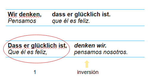 La oración subordinada se coloca al inicio y la oración principal viene después. En este caso, el verbo conjugado de la oración principal ocupa la segunda posición:
